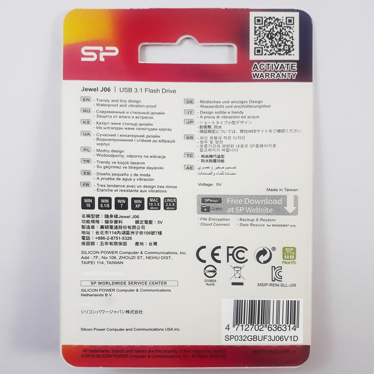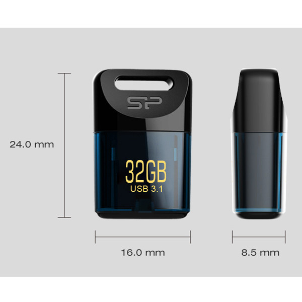 فلشمموری مدل Jewel J06 کمپانی سیلیکون پاور از جنس پلاستیک ساخته شده، ابعاد بسیار کوچکی داشته و سبک وزن است. این مدل از رابط پرسرعت USB 3.1 که معادل USB 3.0 است، بهره میبرد. البته این فلش مموری با درگاه USB 2.0 هم سازگار است. این محصول دارای درپوش است، بنابراین خیال شما از بابت ورود گرد و غبار به داخل شیار USB راحت است . دیگر ویژگی J06 مقاوم بودن آن در برابر آب، لرزش و گرد و غبار است، بنابراین فلش مموری J06 جهت استفاده روزانه و برای افرادی که به یک فلش مموری بسیار کوچک و سبک وزن که نگهداری آن آسان بوده و مقاوم نیز باشد، نیاز دارند، انتخابی ایدهآل است.