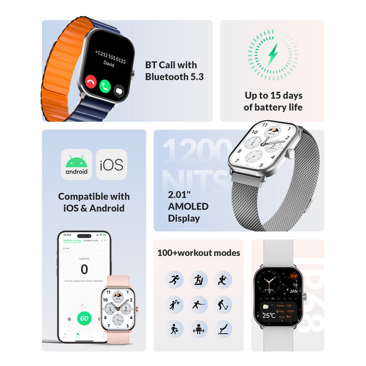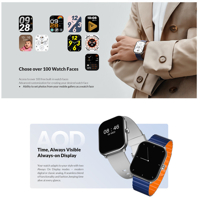 قابلیتهای ساعت هوشمند : قابلیت مکالمه از طریق بلوتوث , کنترل موسیقی (Music Player) , پشتیبانی از زبان فارسی در منو و سیستمعامل , قابلیت تغییر طرح ساعت یا تم , صفحه همیشه روشن (Always-on Display)