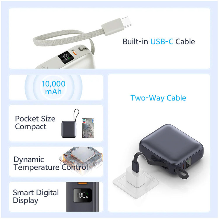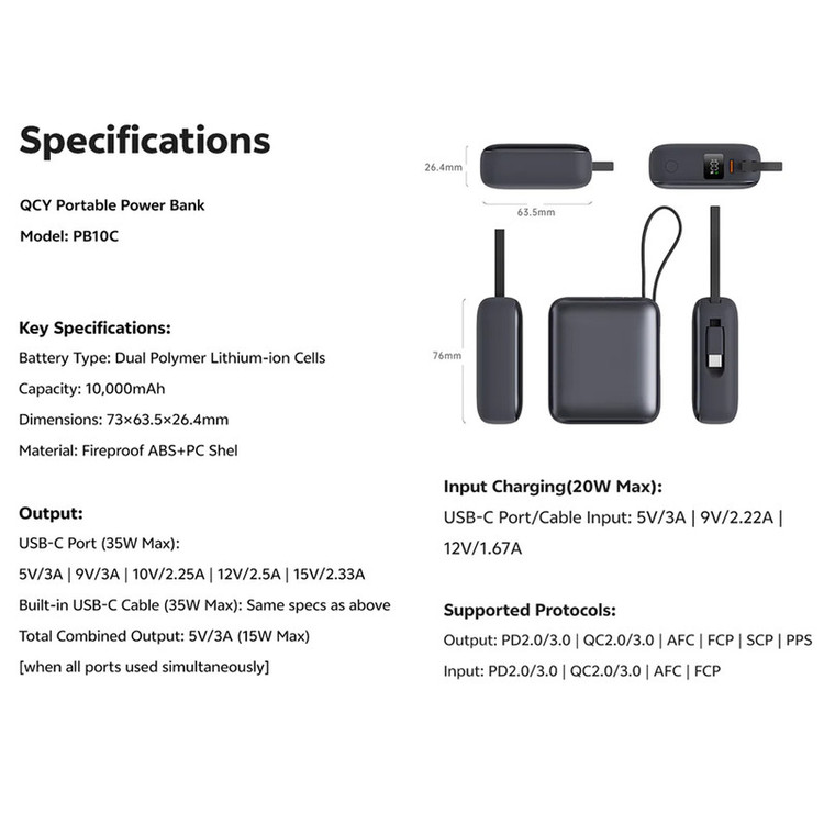 پاوربانک 35 وات کیو سی وای مدل PB10C ظرفیت 10000 میلی‌آمپر ساعت